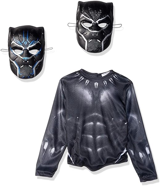 Marvel Black Panther Costume Top Set With Metallic Mask Dress Up